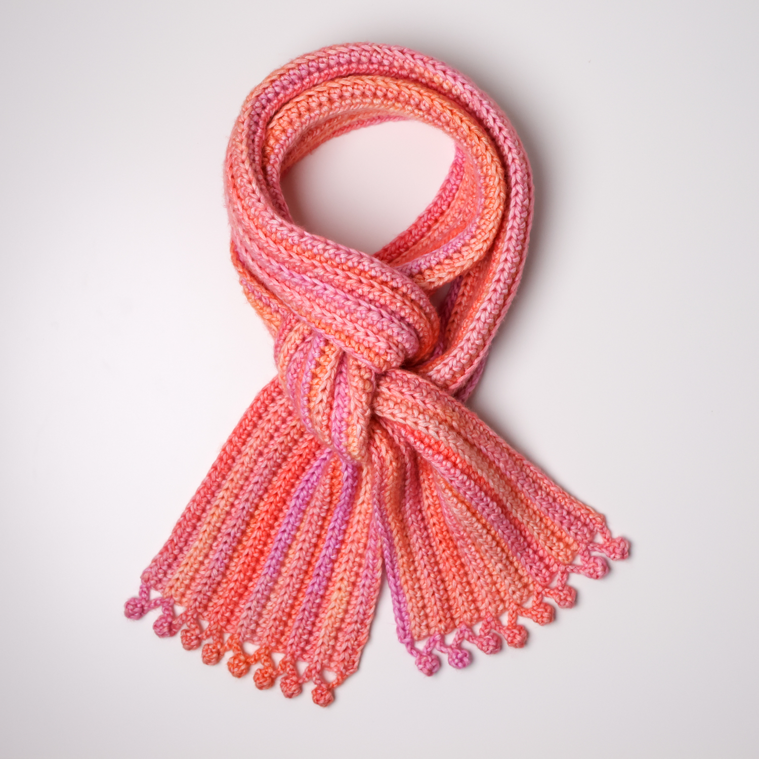 Our finished scarf measures approximately 72″ x 6″ (183 x 15 cm) including bobbles. This scarf can easily be adjusted in length and width simply by adding/removing chains and crocheting more/fewer rows.
